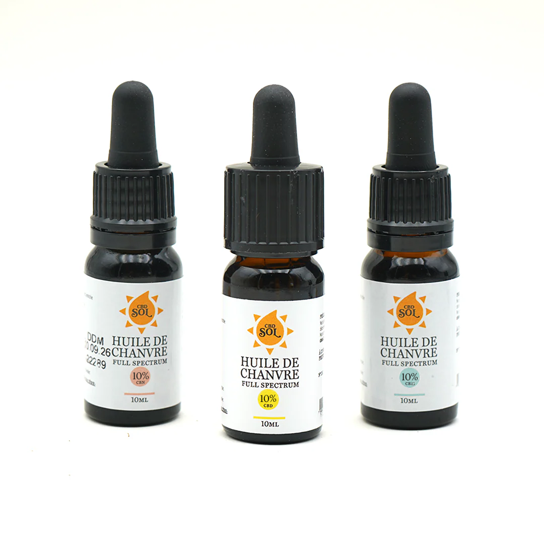 Cannabinoïden hebben vaak verschillende eigenschappen. Als je nog geen keuze hebt gemaakt tussen CBD, CBG en CBN, hebben we een pakket met drie oliën samengesteld om je te helpen deze drie moleculen te ontdekken. Dit pakket bevat 1 x 10 ml flesje Cannabidiol extract (10%), 1 x 10 ml flesje Cannabigerol extract (10%) en 1 x 10 ml flesje Cannabinol extract (10%). Dit geeft je de mogelijkheid om deze cannabinoïden te ontdekken, ze te testen en de juiste voor jou te vinden.